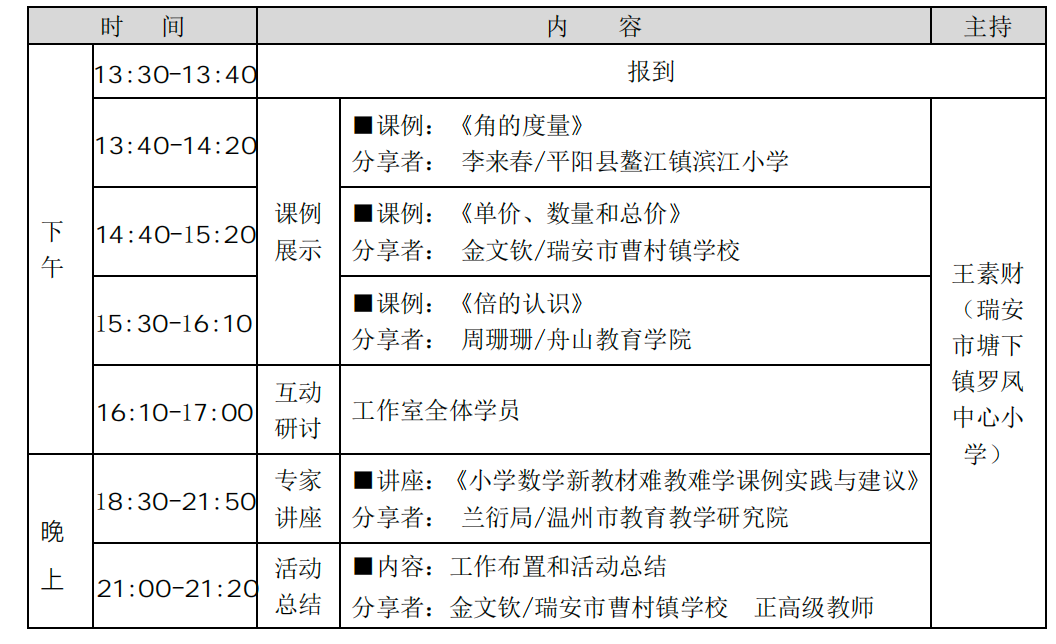 关于举行温州市金文钦小学数学“名师送教”工作室第17次活动的通知
