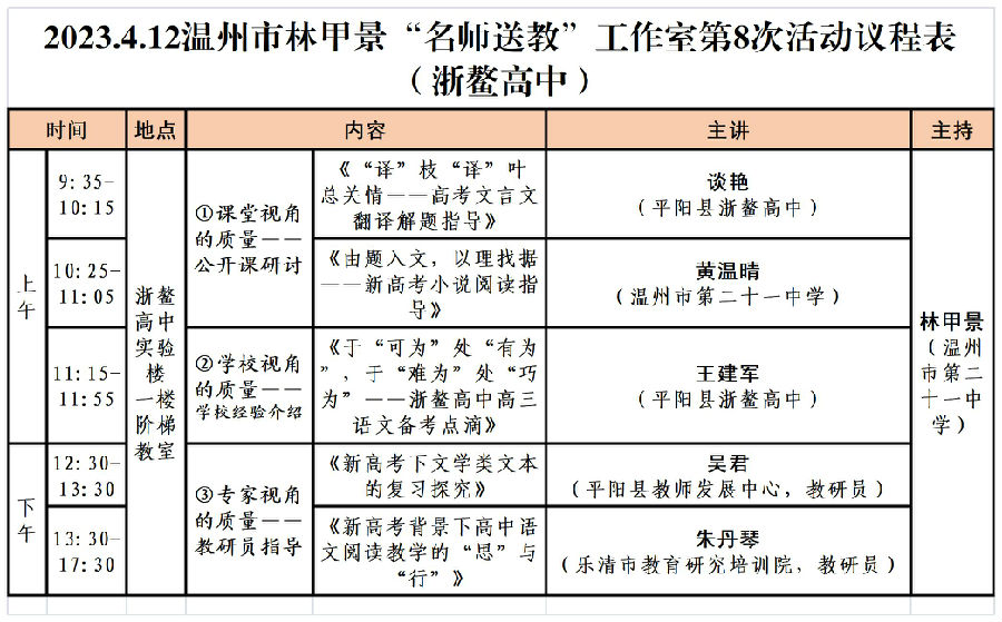 关于举行温州市林甲景“名师送教”工作室第8次活动的通知