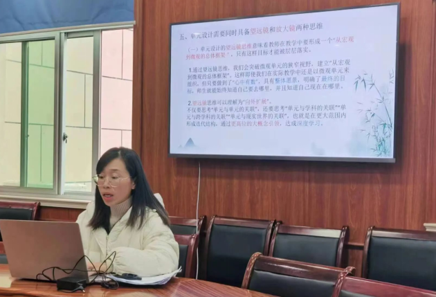 包小素老师认为最好的课堂设计应该是“以终为始”,单元教学需要宏观思维和向内深挖,十分认可吕明志老师课堂上的用“问题链”来组织教学的方式,展示了老师过硬的掌控课堂的能力。