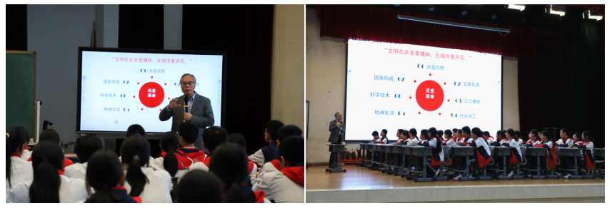 郭富斌老师围绕著名学者贾雷德·戴蒙德的观点,引领同学们探讨了古代文明的历史回响。郭老师通过生动的讲解和丰富的案例,引导学生们从多角度理解古代文明的兴衰历程,并思考其中的历史教训和启示。