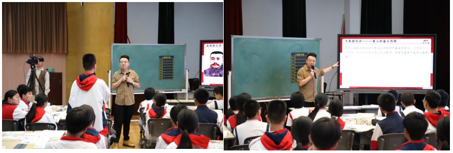 杨林巧老师以一枚邮票为引子,巧妙地点燃了同学们对历史的浓厚兴趣。通过这枚承载着黄埔军校记忆的邮票,老师引领大家穿梭时空,深入探讨了国共合作的辉煌历程与北伐战争的波澜壮阔。